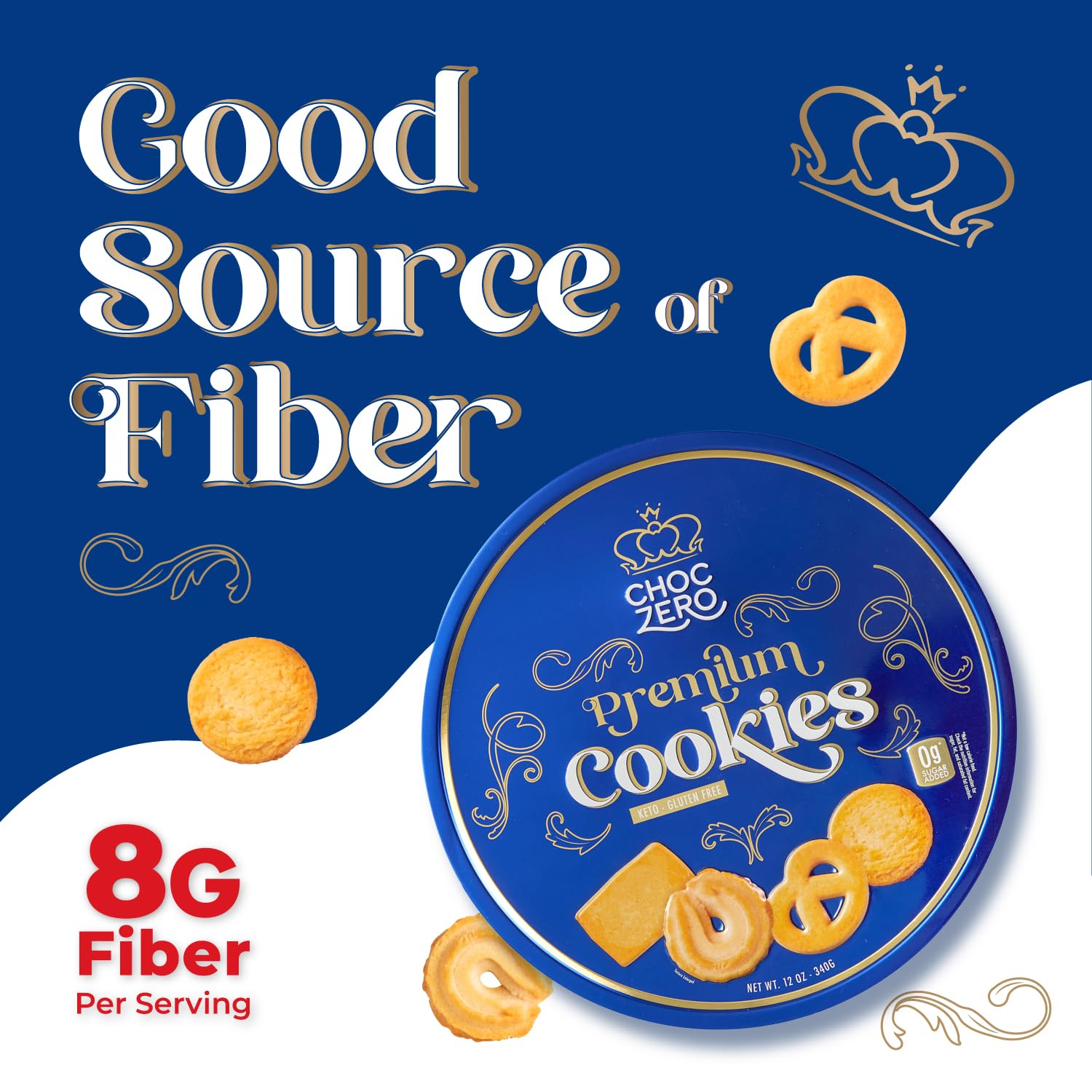 ChocZero Keto Butter Cookies – Sugar Free Danish Shortbread Gift – Gluten Free, Low Carb (1 tin, 12 oz)